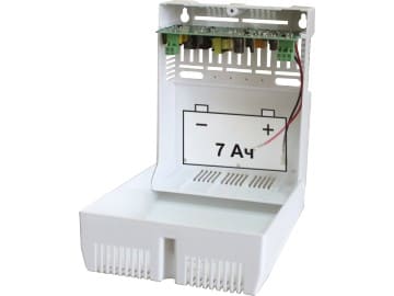 Блок бесперебойного питания «Бастион «Скат-1200Б» рассчитан на потребителей постоянного тока номинальным напряжением 12 В. Построен на основе импульсного преобразователя тока и программируемого PIC-контроллера. Номинальный ток нагрузки — не более 1.7 А, максимальный — 2 А. Мощность, потребляемая от сети, — до 35 ВА. Для бесперебойной работы в автономном режиме нужна свинцово-кислотная герметичная аккумуляторная батарея (в комплект не включена) 12 В емкостью 4.5 А·ч или 7 А·ч, ток заряда — 0.15 ~ 0.20 А.
